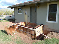 Yesterday the form work and concrete were placed for the footings despite the heavy wind carrying much dust from Utah. Today they almost finished the form work for the walls. The plan is they will be back tomorrow morning, finish the form work and place the concrete. Friday they will return and strip the form work and return on Monday to start the slab.